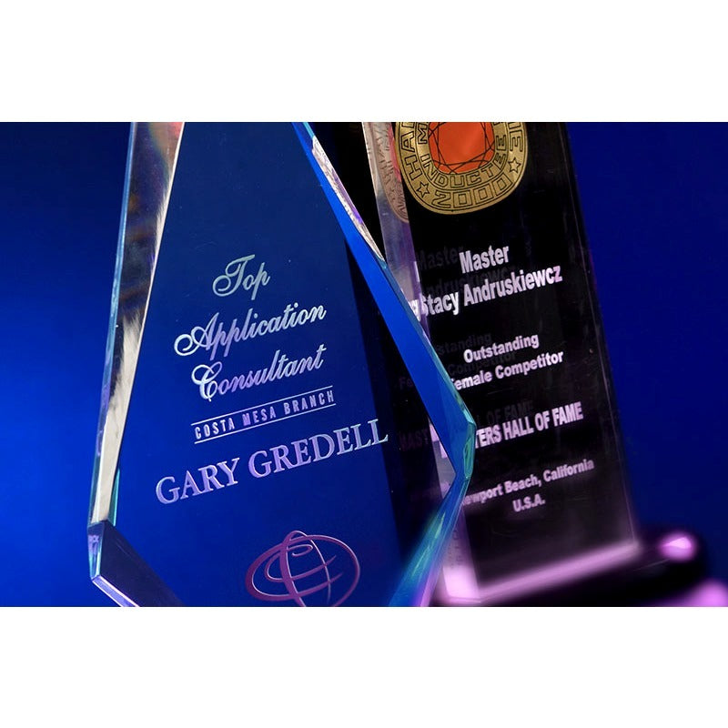 - Scribe names and graphics onto glass and acrylics with the versatility of the DE-3.