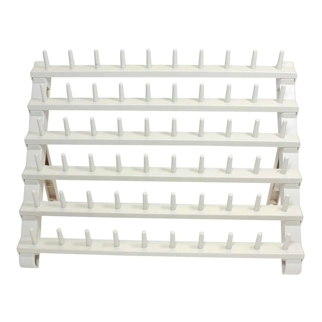 The perfect thread storage stand. Strong, sturdy and easy to assemble. Versatile stand can be mounted on the inside of a sewing cabinet door or to the wall in your sewing room; can also be used free standing on a tabletop. A convenient way to organize and co-ordinate your thread. Holds up to 60 spools of the most common spool sizes. Dimensions: W: 41.5cm (16") x H: 33cm (13") - Table Top: W: 41.5cm (16") x H: 28cm (11") x D: 20cm (8")